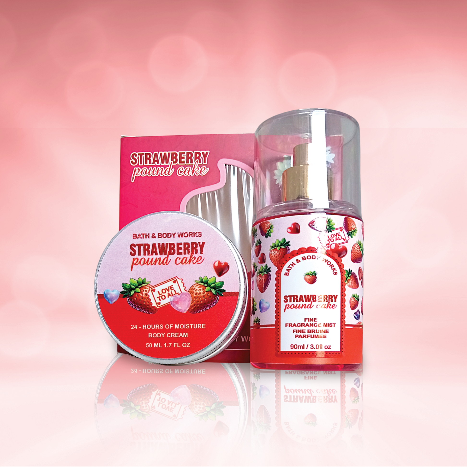 طقم بادي ميست و كريم للجسم برائحة ستروبري باوند كيك من باث اند بدي ووركس
